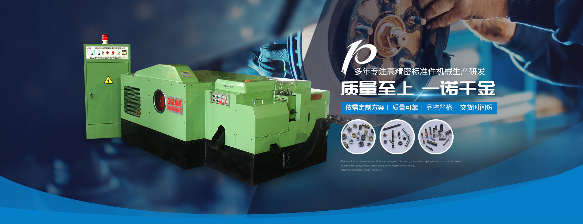 溫州市金諾機(jī)械設(shè)備制造有限公司創(chuàng)立于2003年,公司位于溫州市濱海經(jīng)濟(jì)技術(shù)開(kāi)發(fā)區(qū)。是一家專(zhuān)業(yè)從事研發(fā)和生產(chǎn)高精密度緊固件設(shè)備以及多工位冷擠壓零件成型設(shè)備的專(zhuān)業(yè)制造商。主營(yíng)產(chǎn)品有:冷鐓機(jī)、多工位冷鐓機(jī)。本公司秉承“質(zhì)量為上,一諾千金”,的企業(yè)宗旨,不斷創(chuàng)新,積聚多年冷鐓機(jī)研發(fā)制造經(jīng)驗(yàn)......